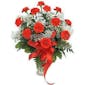 One dozen fresh, long-lasting red carnations arranged in a clear glass vase with baby's breath and greenery.