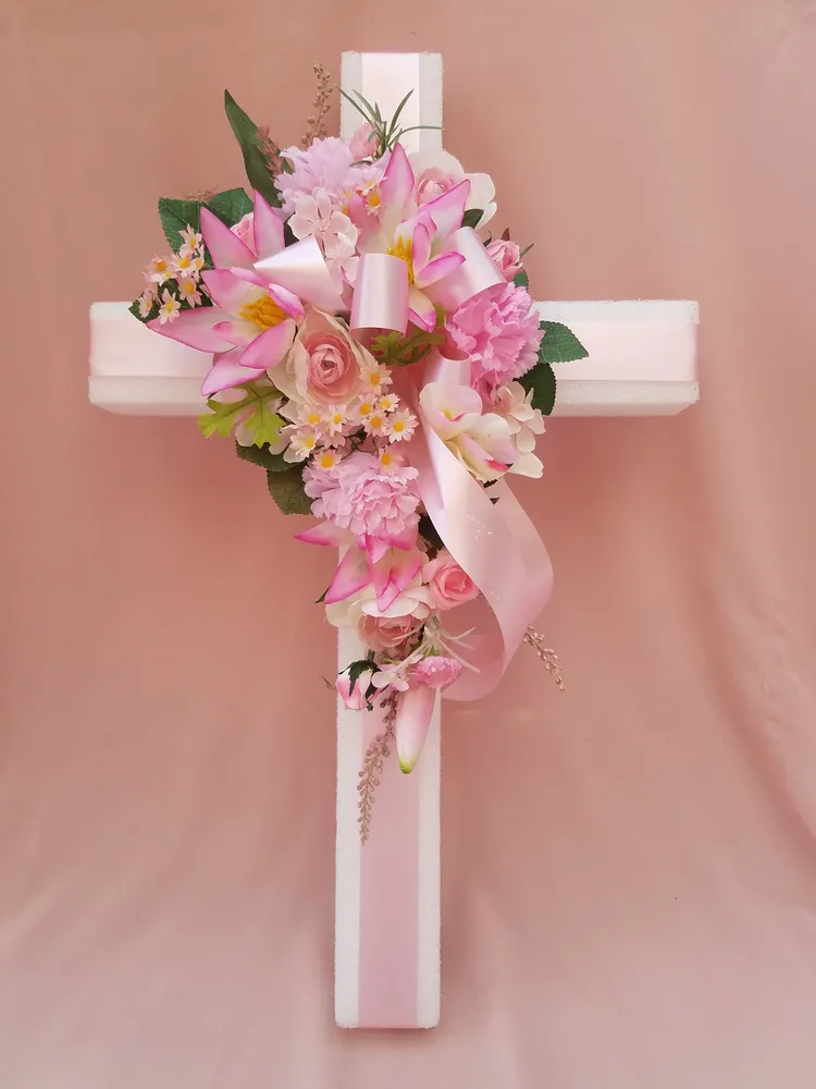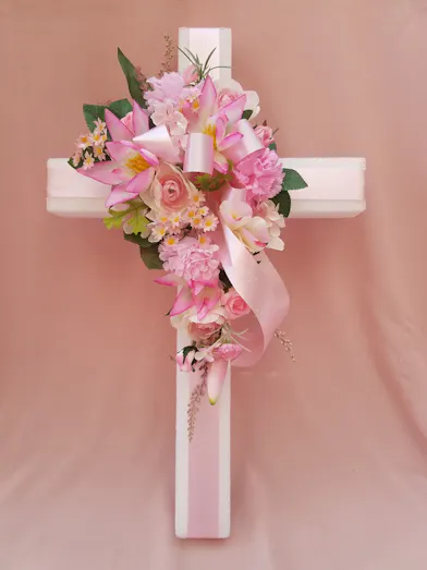 Silk flower cross.