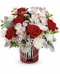 Illuminate your space with our Garden Glow bouquet, showcasing vibrant red and soft pink blooms in a striking red glass lantern with a silver handle. This captivating arrangement brings a cozy warmth to any setting!This arrangement features red roses, pink alstroemeria, white cushion spray chrysanthemums, pink sinuata statice, dusty miller, leatherleaf fern, and pitta negra.