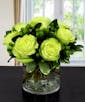 A cylinder vase of green roses and filler.