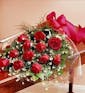 One dozen Red Roses arranged presentation style in cellophane. Complete with greenery & baby's breath. A special way to express your feelings. Your choice of color.
