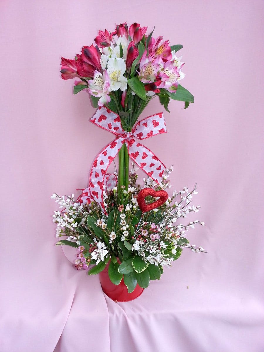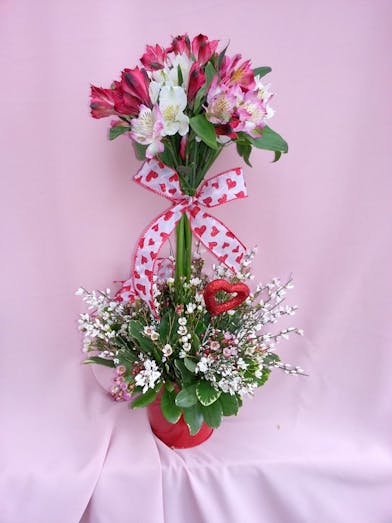 Alstromeria is the beautiful flower that is used to create this piece. Valentine color assortment..